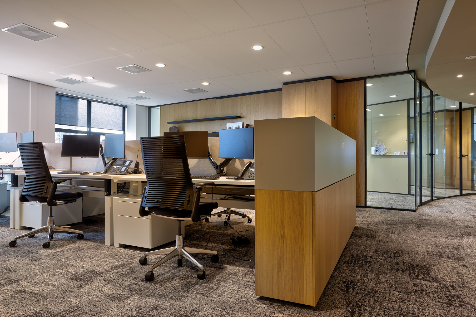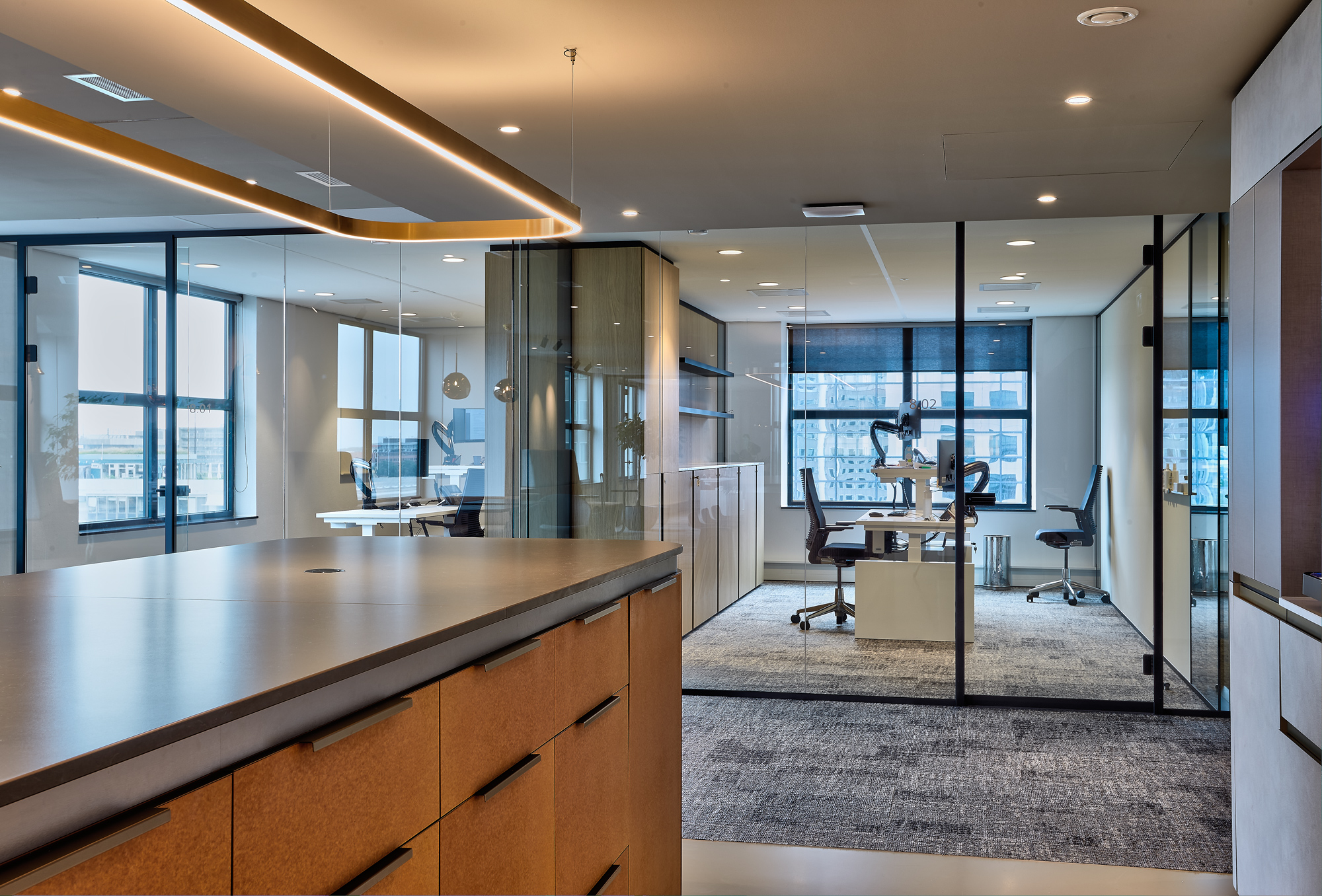 Voldoende afzondering en privacy om vertrouwelijke kwesties te behandelen en geconcentreerd te kunnen werken, maar ook voldoende openheid en transparantie om samen te kunnen werken, te ontmoeten en te overleggen. Op basis van die voorwaarden heeft Fokkema & Partners (verantwoordelijk voor het ontwerp) van de voorheen gesloten kantoorverdiepingen van het advocatenkantoor een ruime en communicatieve werkomgeving gemaakt.