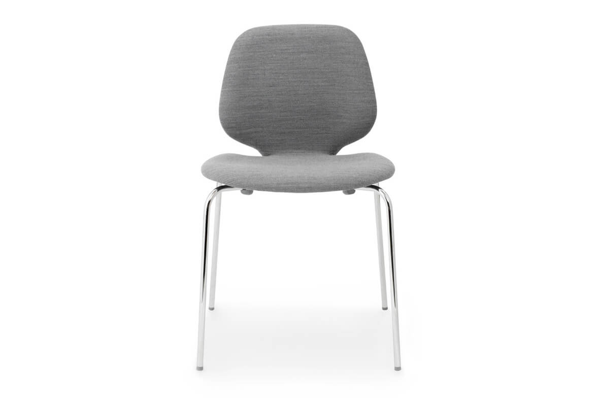 De schaal kan tevens worden gestoffeerd in de Gabriel-stoffen: Fame, Crisp, en Breeze Fusion, de Kvadrat-stof: Hallingdal en in leder: Tango van Sørensen. Bij de gestoffeerde stoel is de zitting opgebouwd vanuit een essen schaal met PU-schuim, de poten zijn altijd verchroomd.