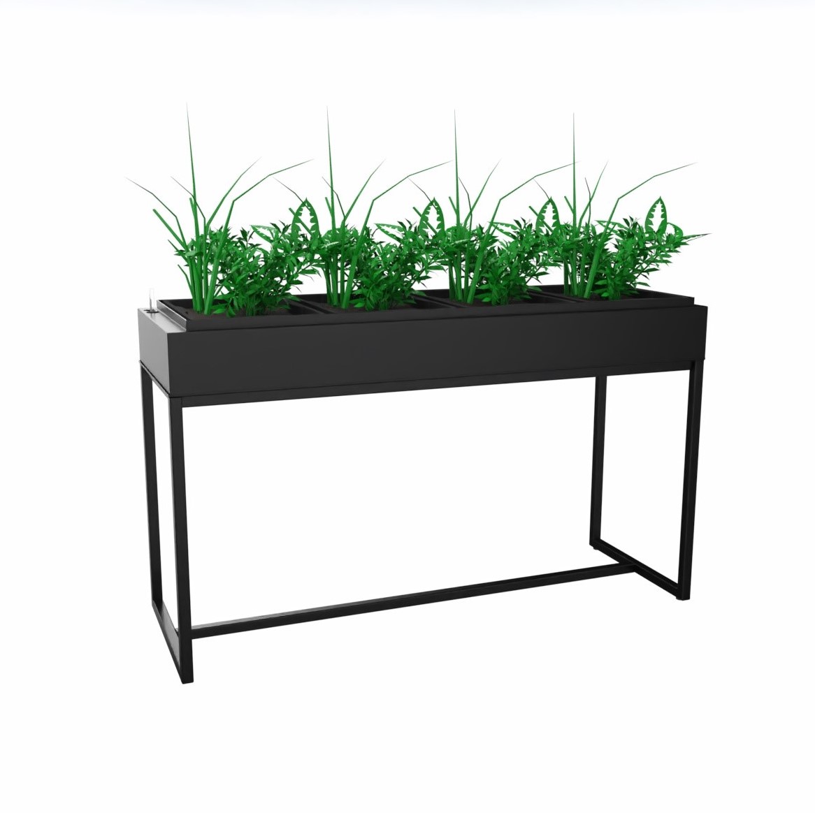Rack stalen plantenbak –  Modulair beplantingssysteem. Voorzien van doorvoer voor watermeter en druppelvormig gat t.b.v. aanvulling waterniveau.