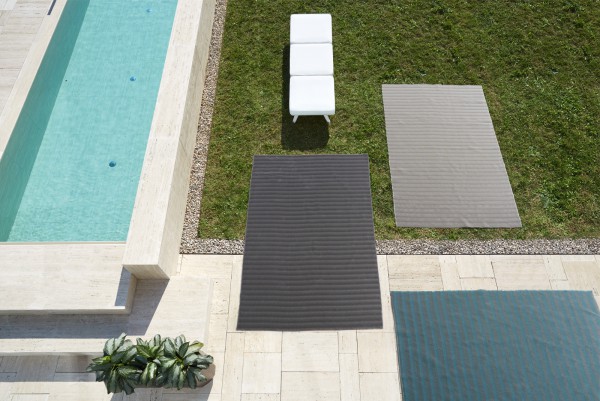 Dankzij het speciale golvende weefsel benadrukt de Wave van polyester buitentapijten, naast de inrichting van de ruimtes, onze collecties.